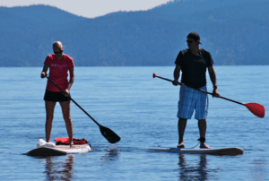 Today was another day packed full of activities. We started off paddle boarding in the crystal clear water of Lake Tahoe at Commons Beach under the terrific instruction of Willard’s Sport Shop owner, Dax Willard. Afterward, we had a healthy lunch at the facility provided by Tahoe Yacht Club.