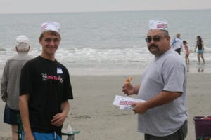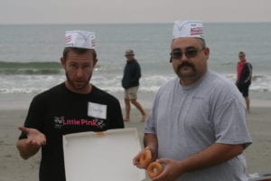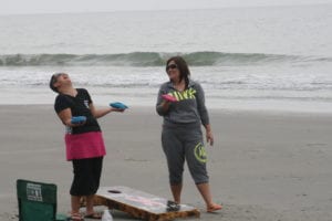 The first full day of the North Myrtle retreat started off strong. The sun eventually came through the haze and we all had a blast on the beach. Some enjoyed playing with foam gliders or competing in cornhole (Beanbag toss game) while others took the chance to relax and get to know each other.