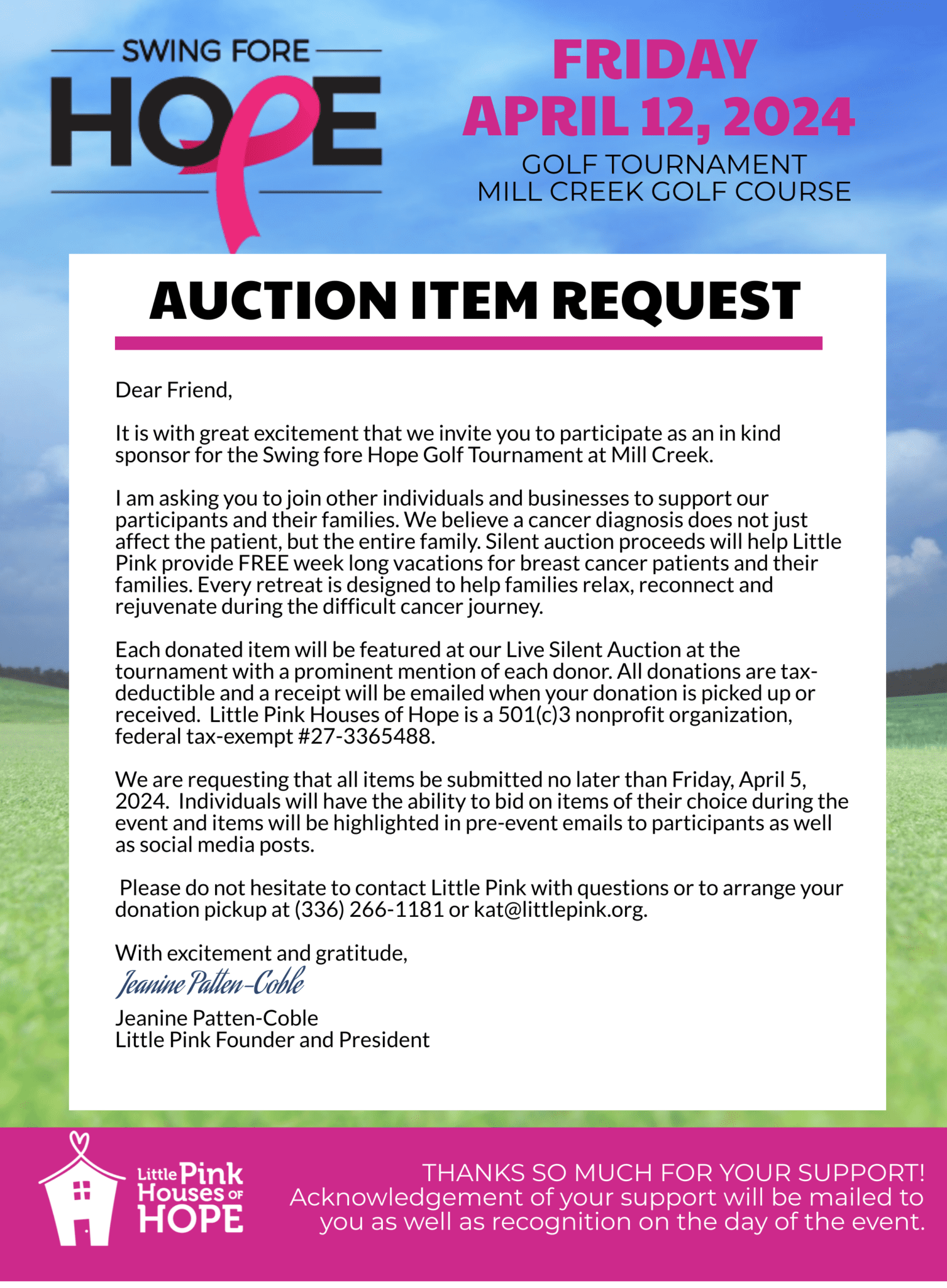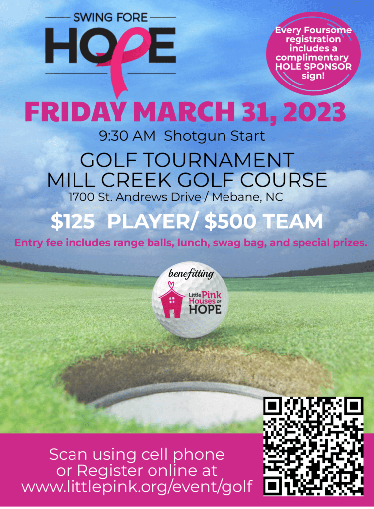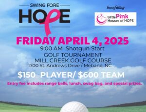 Swing Fore Hope Golf Tournament Apr 17 From 09:00am - 03:00pm REGISTER FOR TOURNAMENT AS PLAYER or FOURSOME CAN’T PLAY BUT INTERESTED IN BECOMING A HOLE SPONSOR? CLICK HERE Would you like to donate an item to the Silent Auction- Click Here