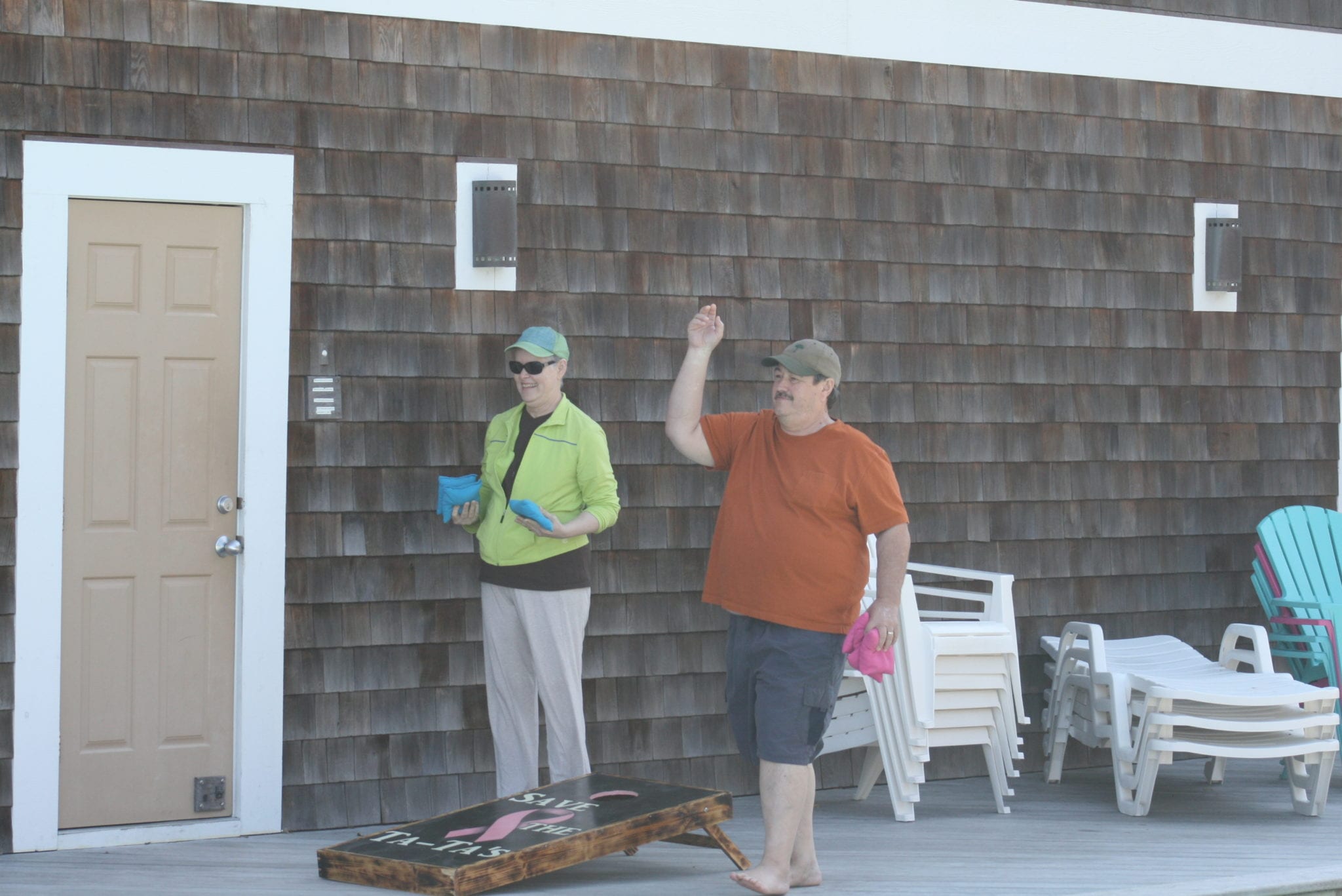 Today started with a continental breakfast and some friendly competition. We had a poolside round robin cornhole tournament running from the morning until noon. It was an impressive display of talent and sportsmanship from everyone who played. Then it was time for lunch as the volunstars prepared sandwiches for all of the couples.