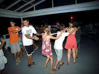 This morning consisted of competitive games of disc golf, basketball and tennis. The kids divided themselves in teams and made new rules for games of basketball. After their picnic lunches most of the families spent their chill time on the beach soaking up the sun and relaxing. Everyone met at the pancake house for a wonderful donated dinner of baked ziti and salad. Later tonight everyone went on a party cruise and the kids had such a good time dancing. The younger boys were break dancing and doing the robot to the applause of those around them. All the kids and adults had the opportunity to let loose and have fun after a long day in the sun. Everyone is having an amazing time getting to know each other and forming new relationships in Carolina Beach.
